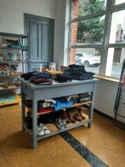 Ce projet solidaire est réalisé pour aider des familles, en situation difficile, à obtenir gratuitement ce dont ils ont besoin, mais également à d’autres de se débarrasser d’affaires dont ils n’ont plus l’utilité tout en faisant une bonne action. Le vestiaire est un lieu de partage, d’échanges et de convivialité, à l’image des valeurs de l’association. On y retrouve donc un bureau à l’entrée pour vous accueillir, avec le nom du local inscrit, confectionné par nos soins.
