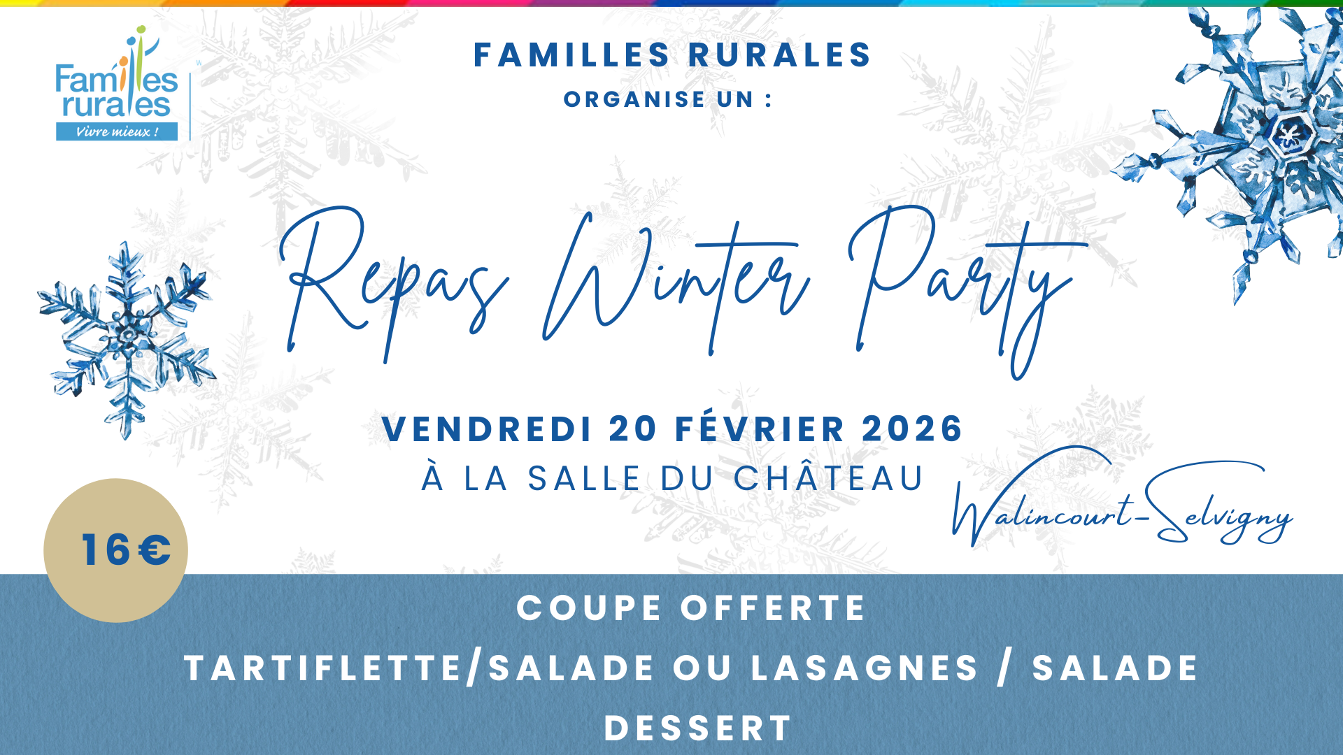 🍽️❄️ Winter Party : une soirée gourmande et festive à Walincourt-Selvigny ! Familles Rurales vous donne rendez-vous pour une Winter...